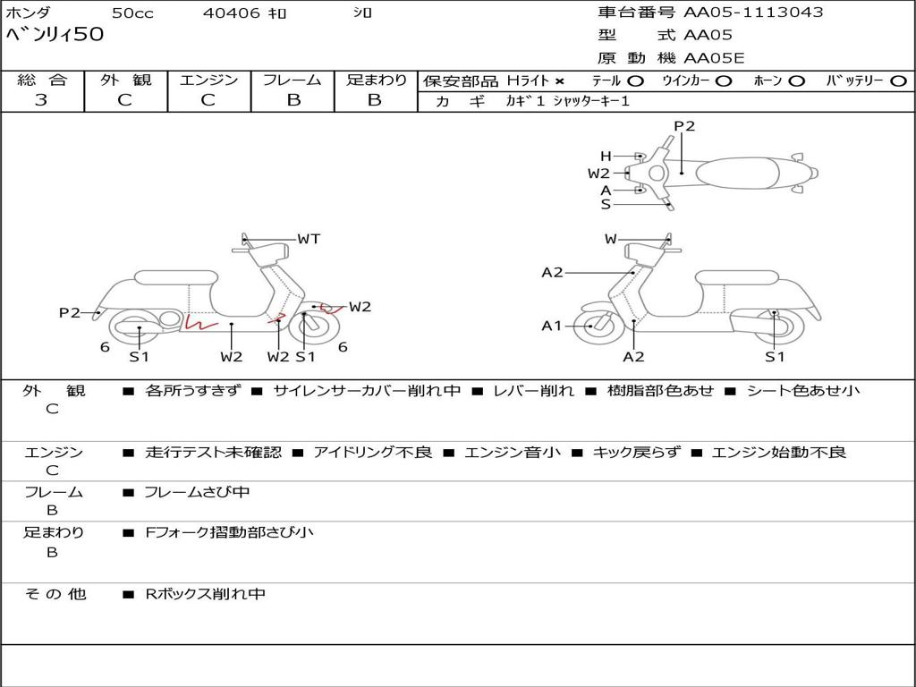 | Номер рамы / VIN | AA05-1113043 |