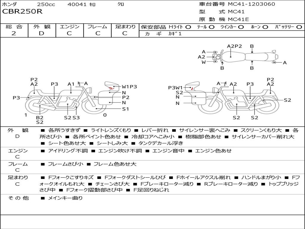 | Номер рамы / VIN | MC41-1203060 |