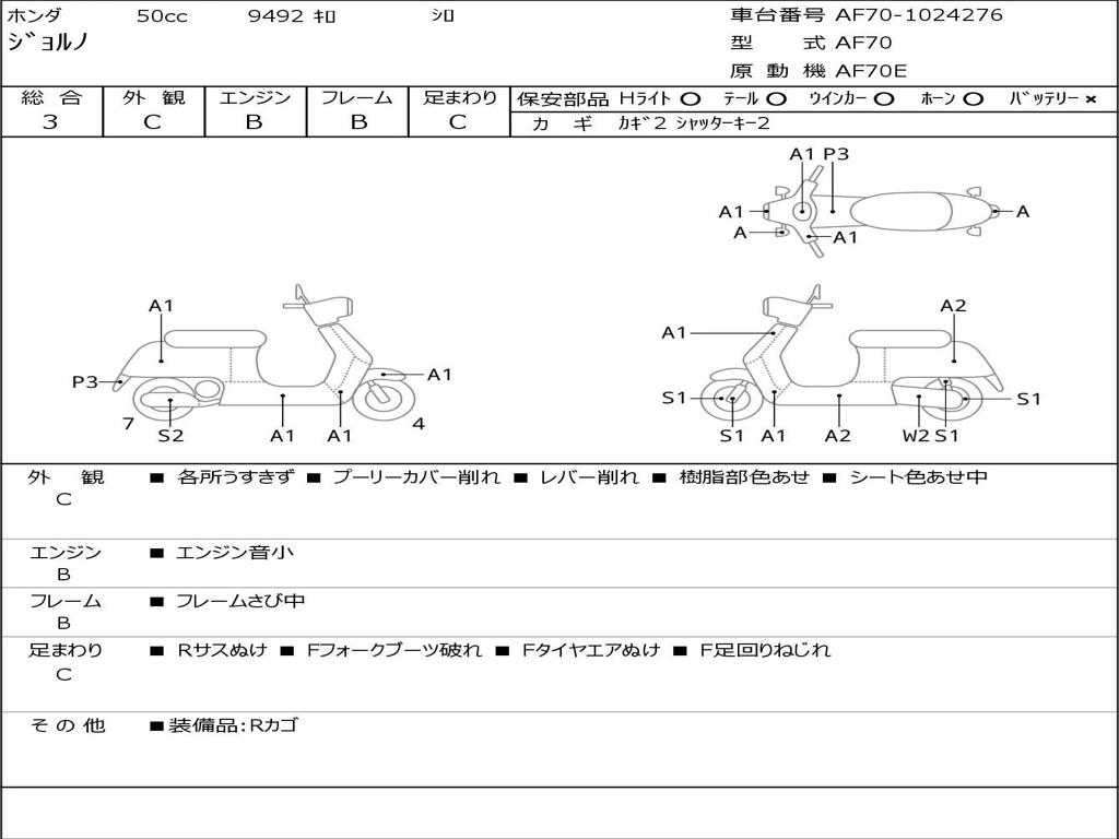 | Номер рамы / VIN | AF70-1024276 |