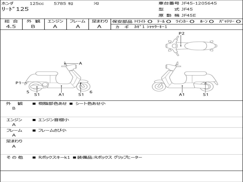 | Номер рамы / VIN | JF45-1205645 |