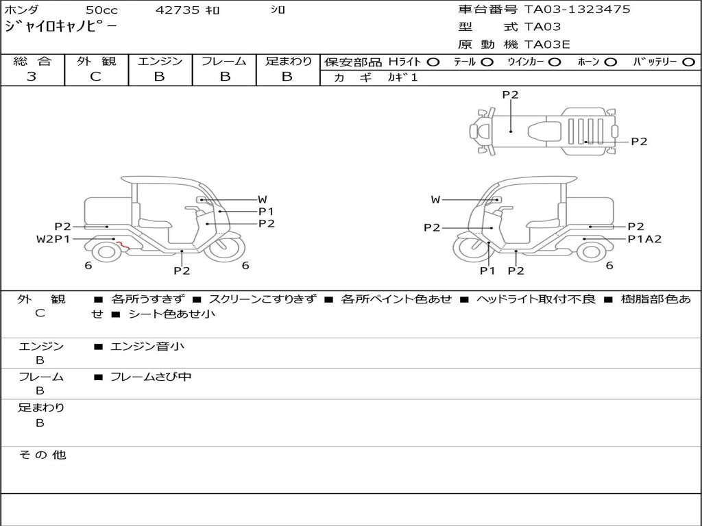 | Номер рамы / VIN | TA03-1323475 |