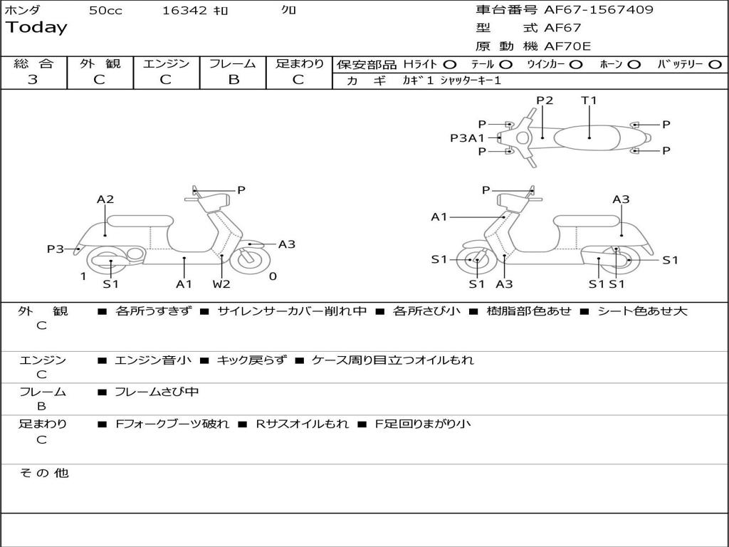 | Номер рамы / VIN | AF67-1567409 |