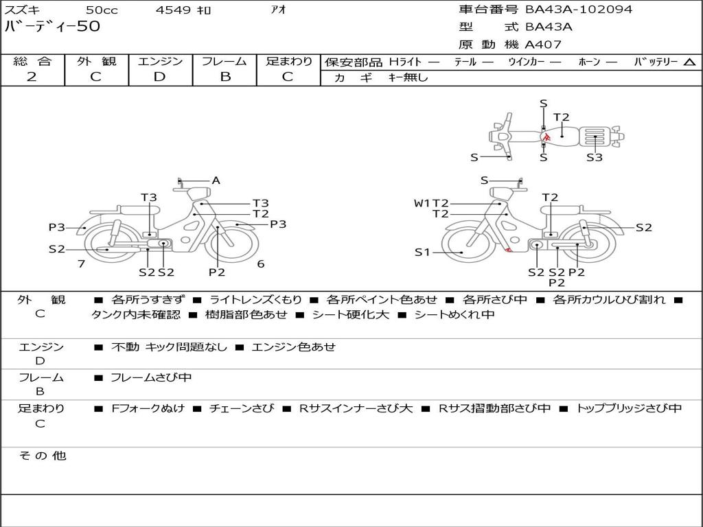 | Номер рамы / VIN | BA43A-102094 |
