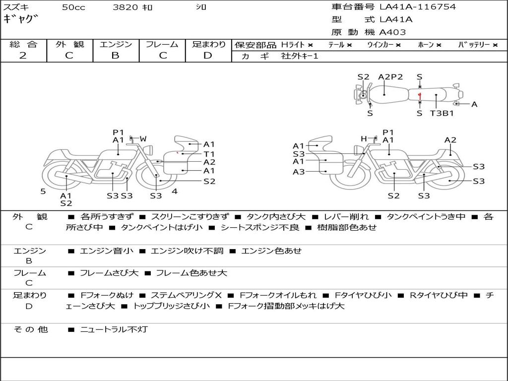 | Номер рамы / VIN | LA41A-116754 |