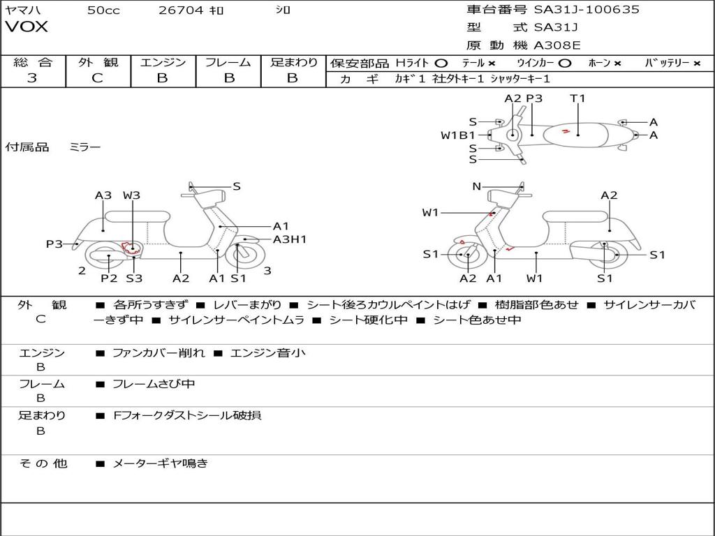 | Номер рамы / VIN | SA31J-100635 |