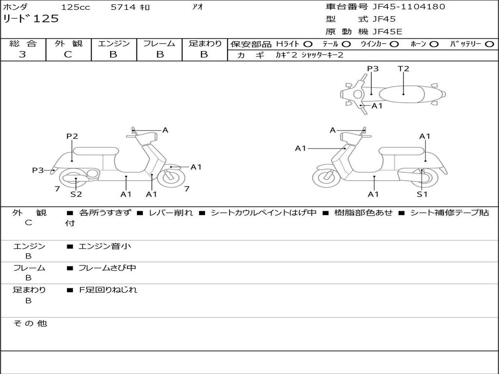 | Номер рамы / VIN | JF45-1104180 |
