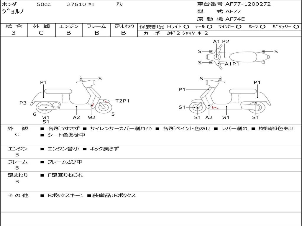 | Номер рамы / VIN | AF77-1200272 |