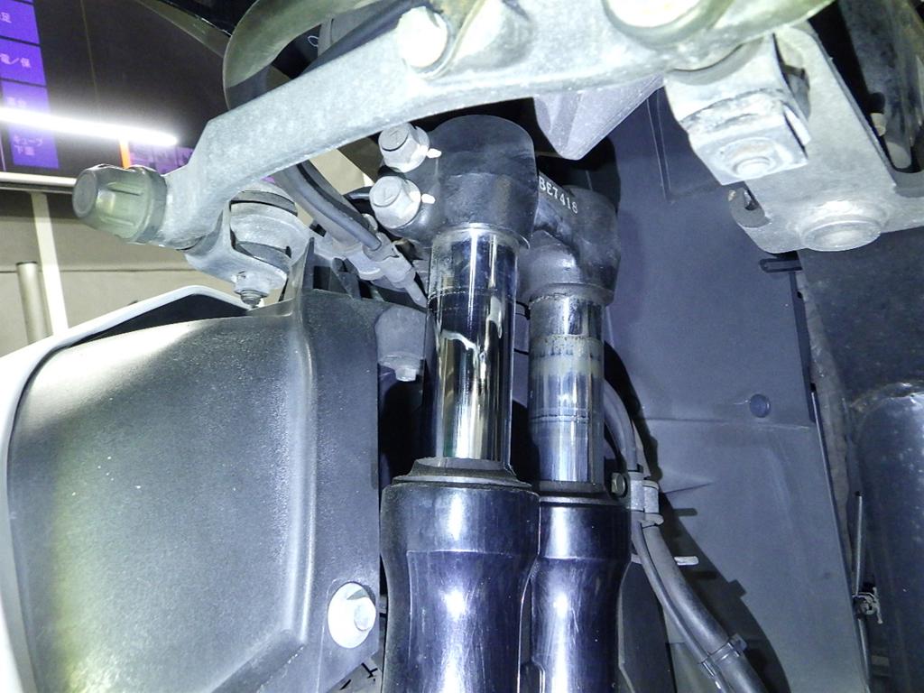 | внешняя часть вилки | царапины <много>, следы коррозии, потек масла <много> |