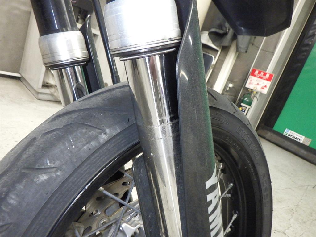 | внешняя часть вилки | царапины, следы коррозии, потек масла <много>, ухудшение, неисправен сальник |