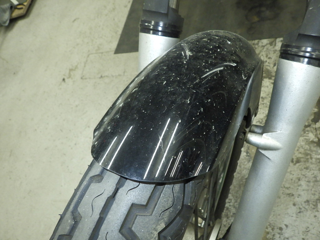 | внешняя часть вилки | царапины <много>, следы коррозии, потек масла <много> |