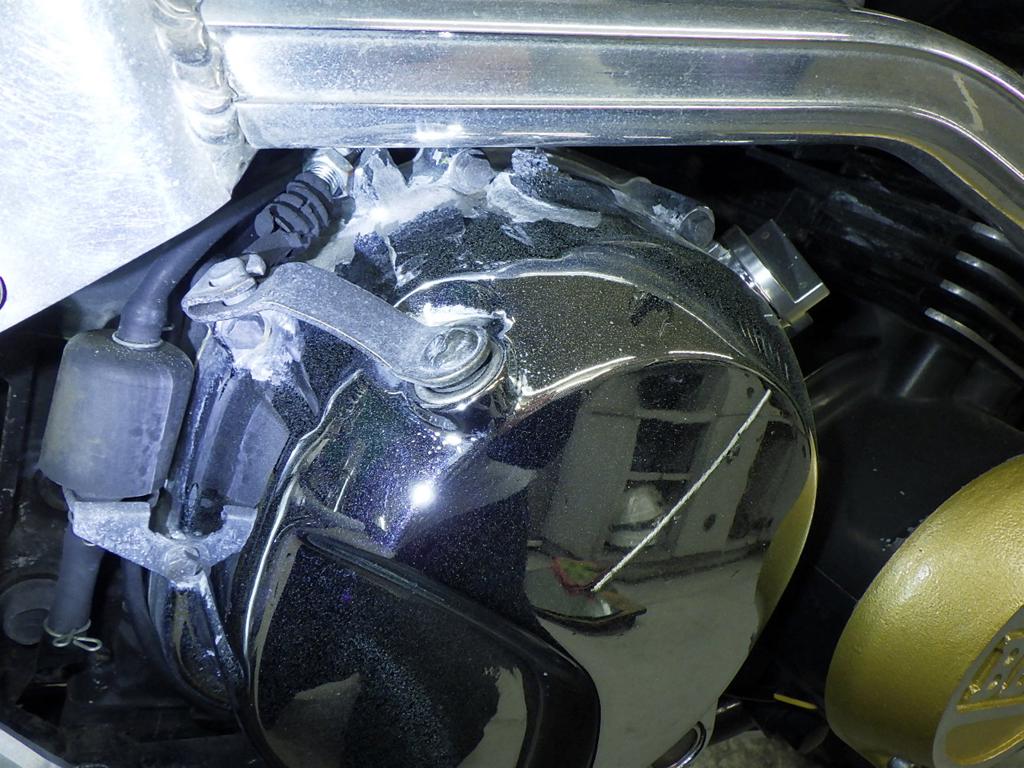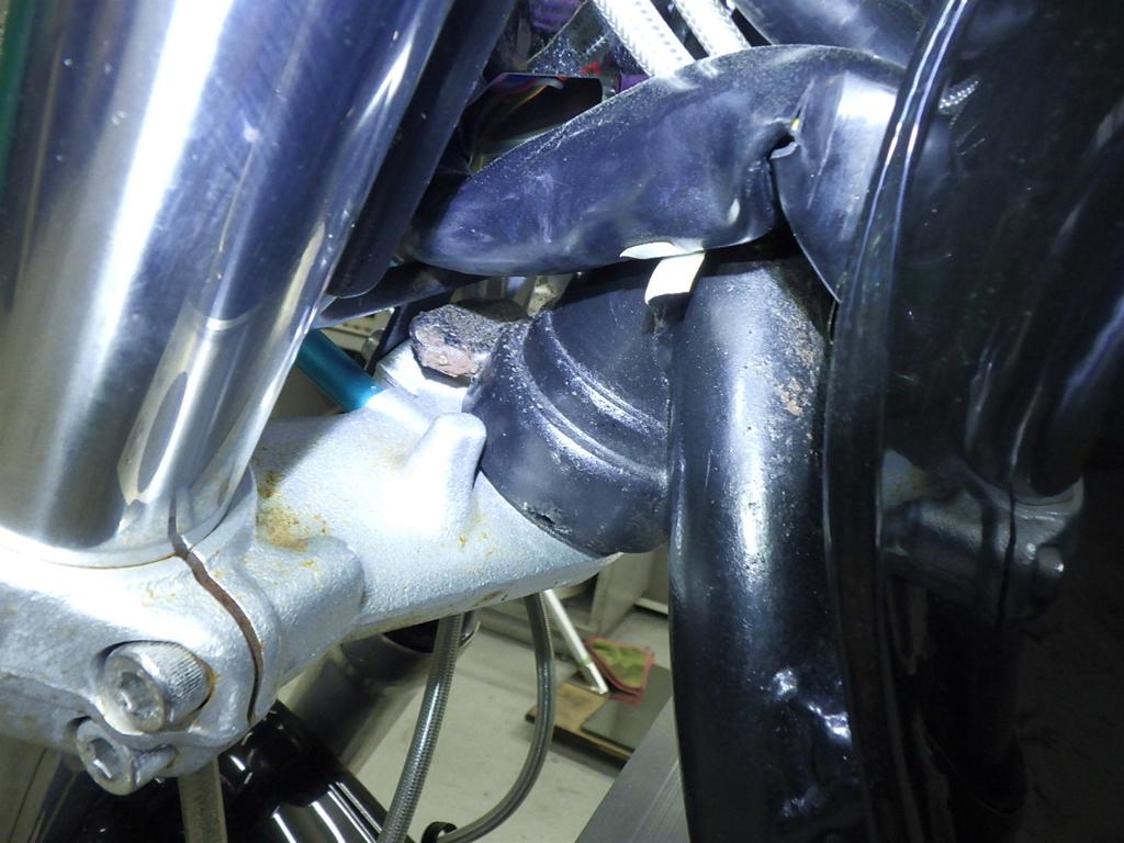 | внешняя часть вилки | царапины, следы коррозии <много>, потек масла |