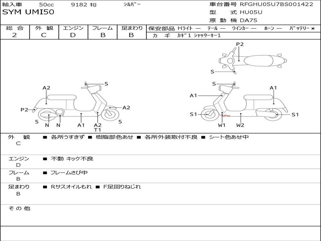 | Номер рамы / VIN | RFGHU05U7BS001422 |