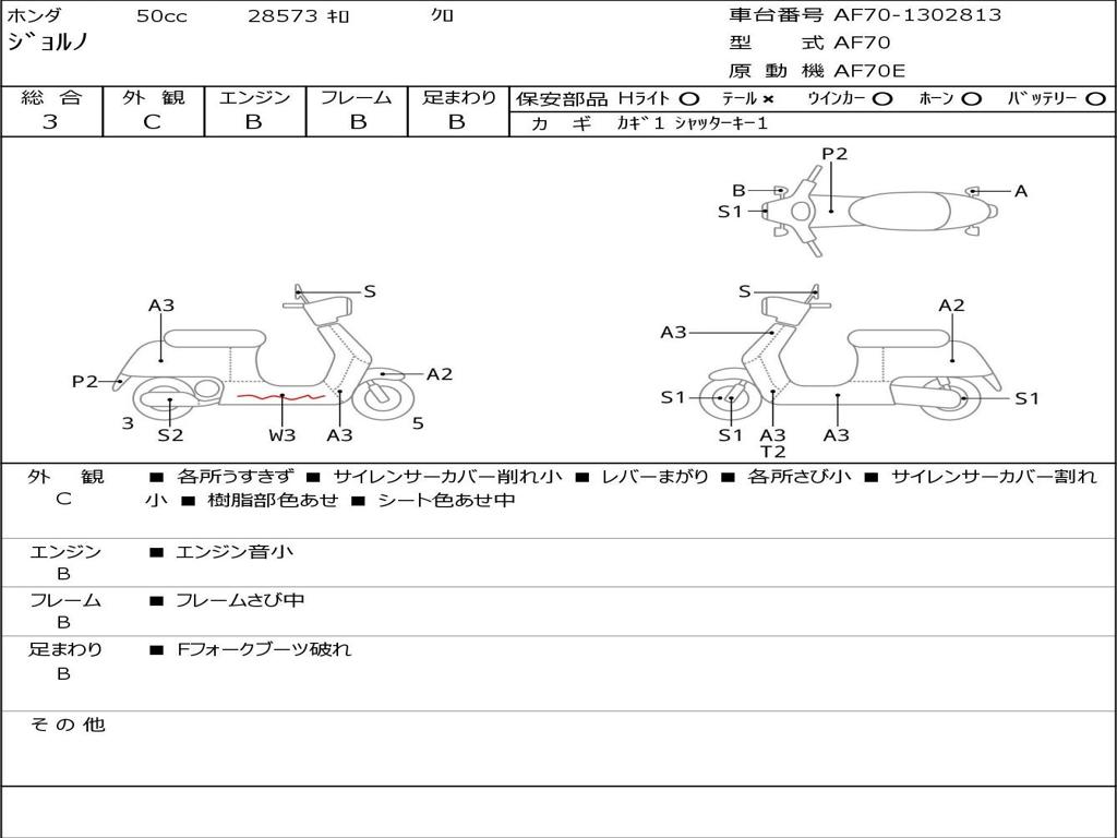 | Номер рамы / VIN | AF70-1302813 |