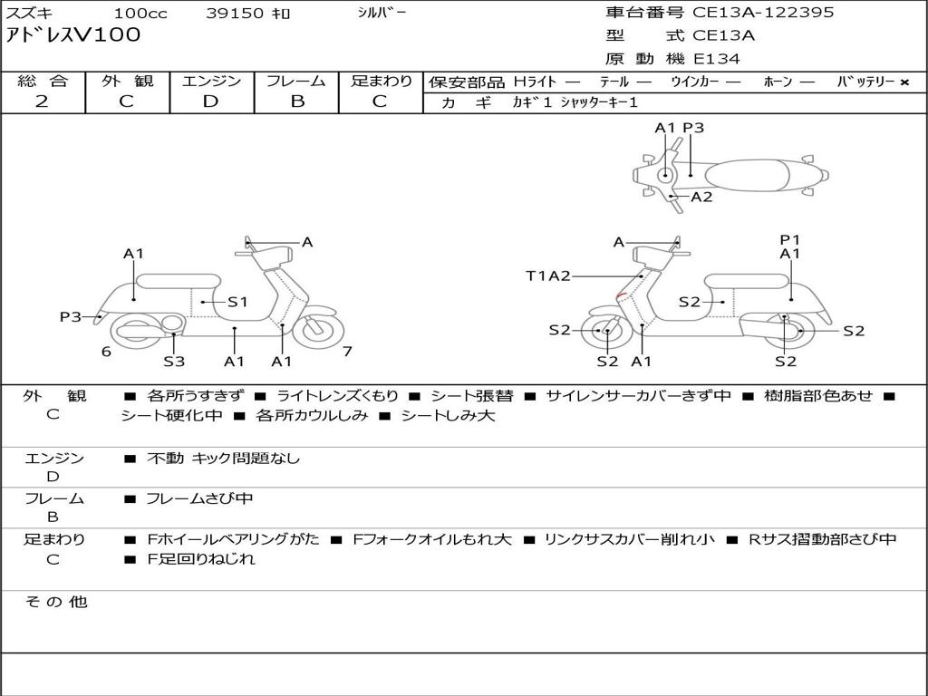 | Номер рамы / VIN | CE13A-122395 |