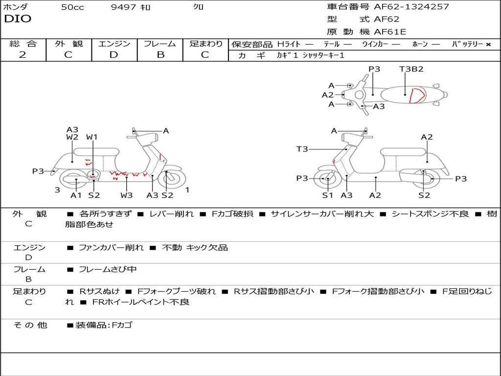 | Номер рамы / VIN | AF62-1324257 |