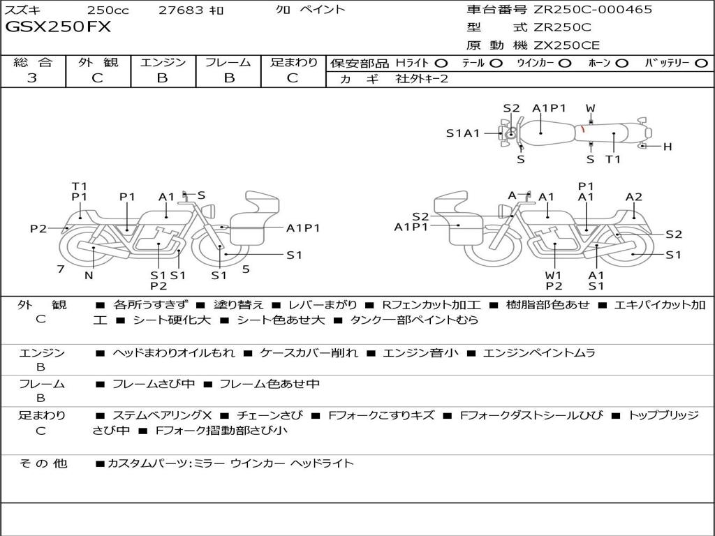 | Номер рамы / VIN | ZR250C-000465 |