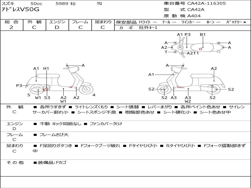 | Номер рамы / VIN | CA42A-116305 |