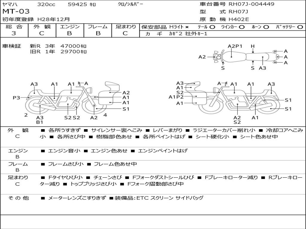 | Номер рамы / VIN | RH07J-004449 |