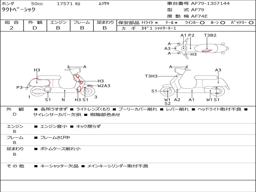 | Номер рамы / VIN | AF79-1307144 |