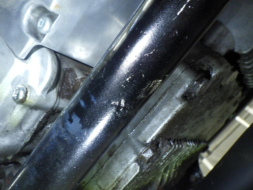 | нижняя часть рамы | царапины <много>, потертость, вмятина <средне>, исправлен., перекрашено, неисправность, неравномерность цвета ЛКП |