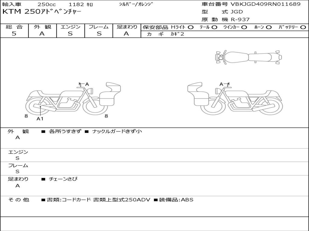 | Номер рамы / VIN | VBKJGD409RN011689 |