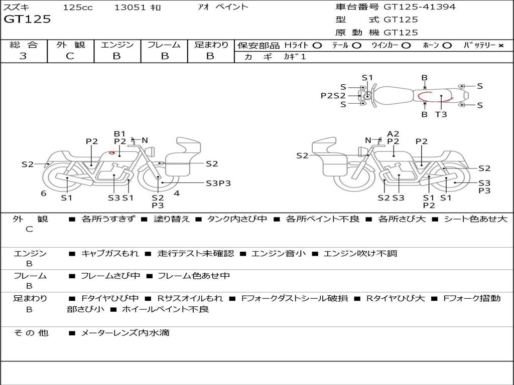 | Номер рамы / VIN | GT125-41394 |