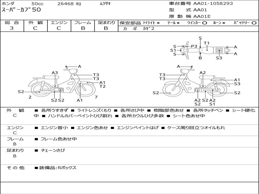 | Номер рамы / VIN | AA01-1058293 |