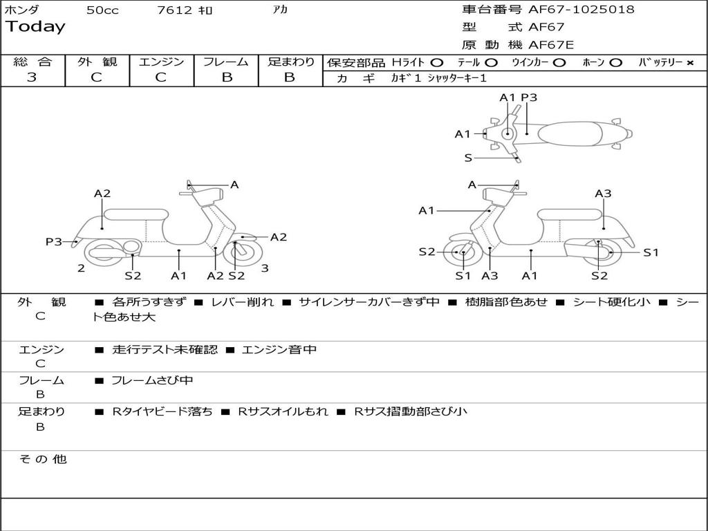 | Номер рамы / VIN | AF67-1025018 |