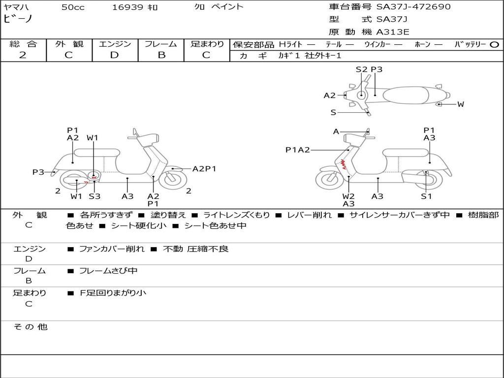 | Номер рамы / VIN | SA37J-472690 |