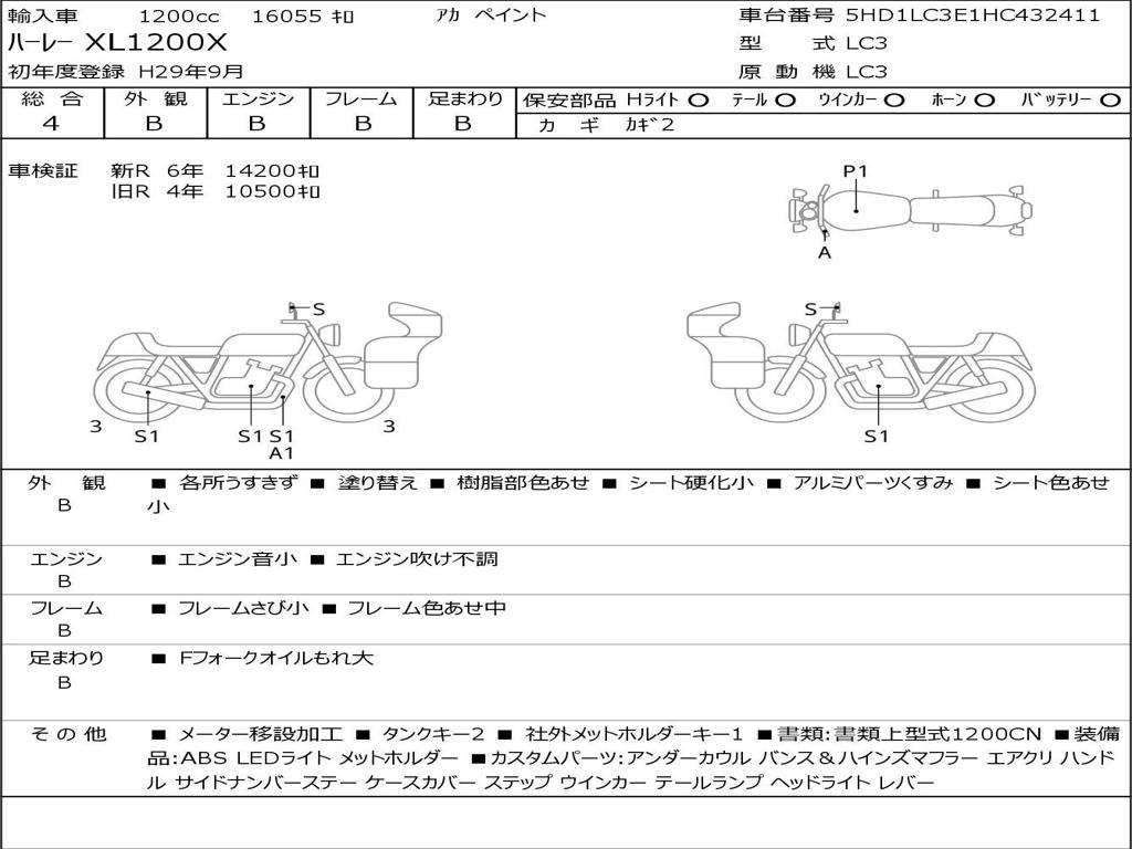 | Номер рамы / VIN | 5HD1LC3E1HC432411 |