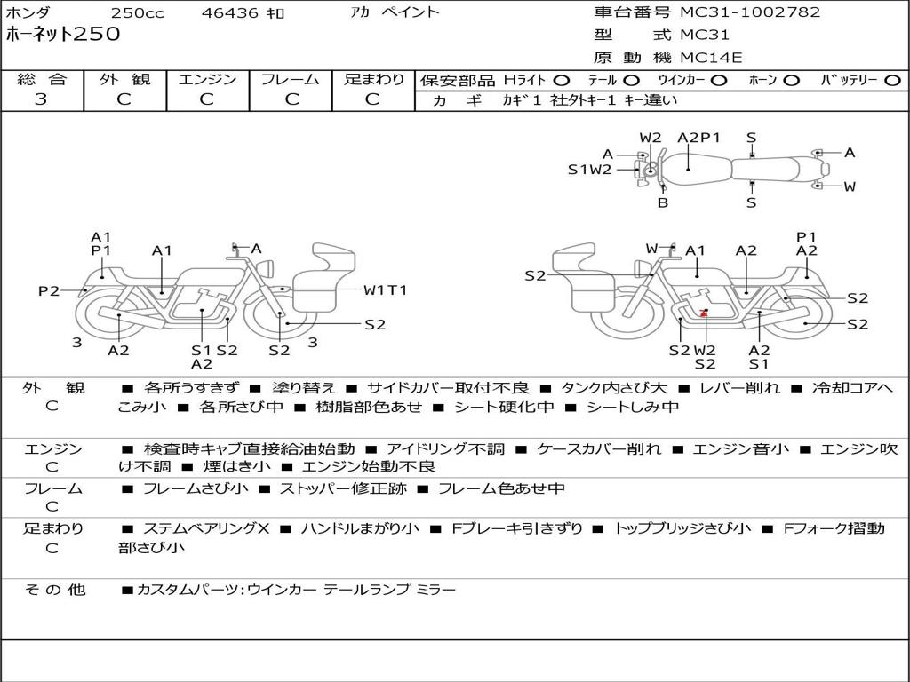 | Номер рамы / VIN | MC31-1002782 |