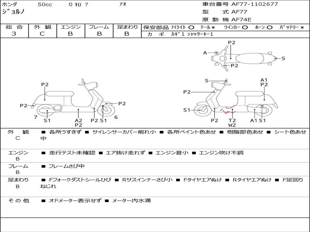 | Номер рамы / VIN | AF77-1102677 |