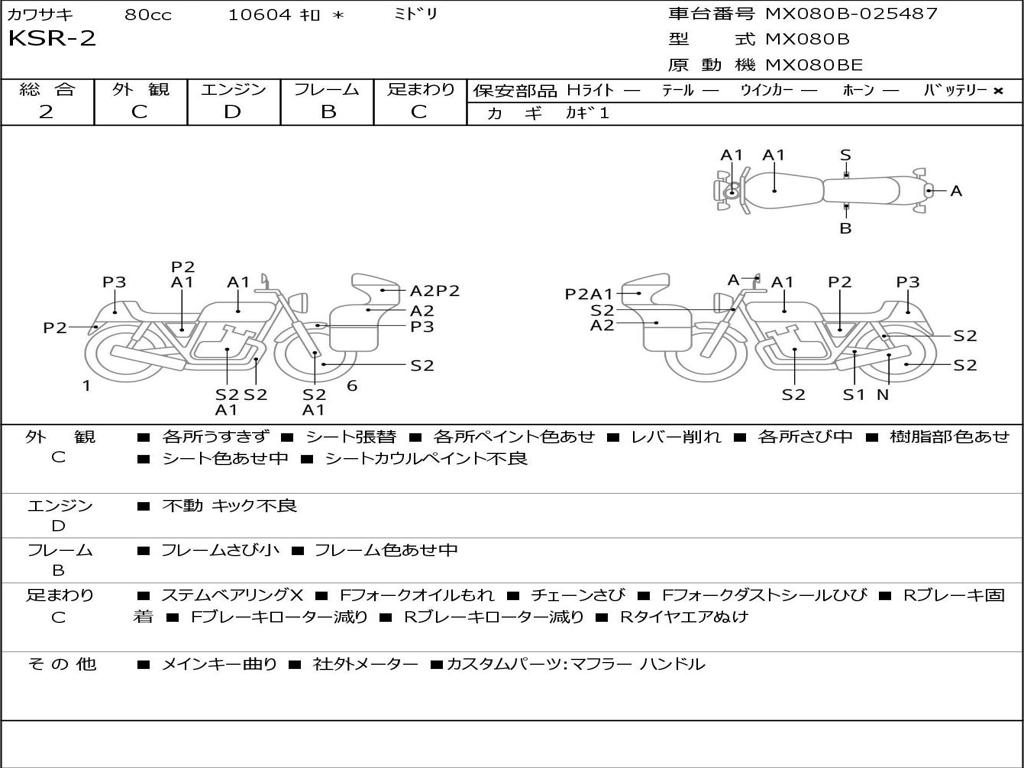 | Номер рамы / VIN | MX080B-025487 |