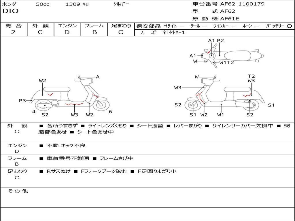 | Номер рамы / VIN | AF62-1100179 |