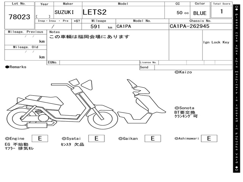 | Номер рамы / VIN | CA1PA-262945 |
