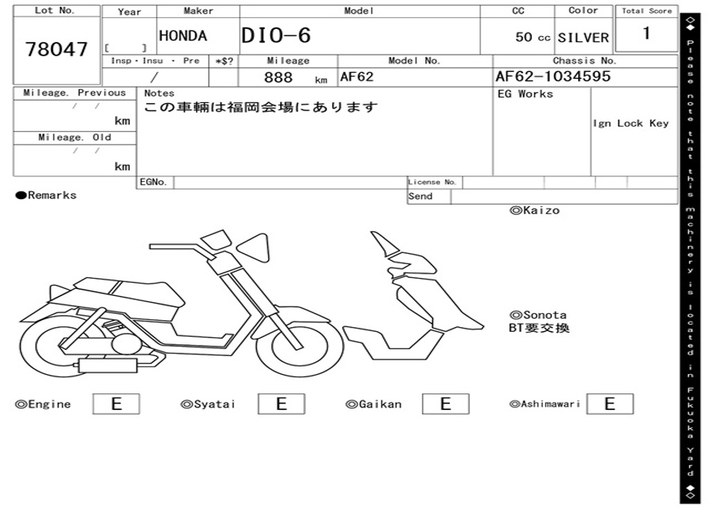 | Номер рамы / VIN | AF62-1034595 |