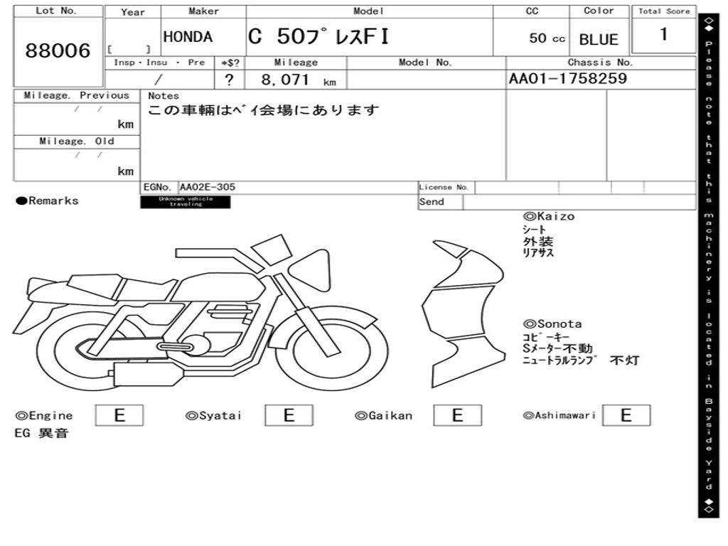 | Аукцион | ARAI BAYSIDE |