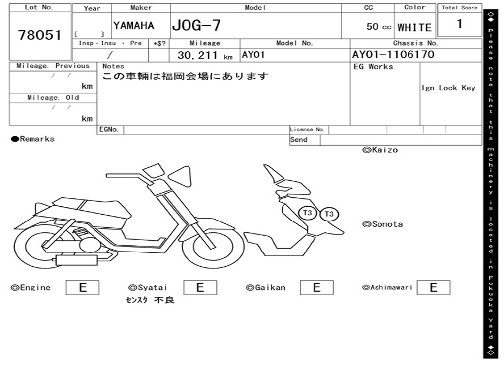 | Номер рамы / VIN | AY01-1106170 |