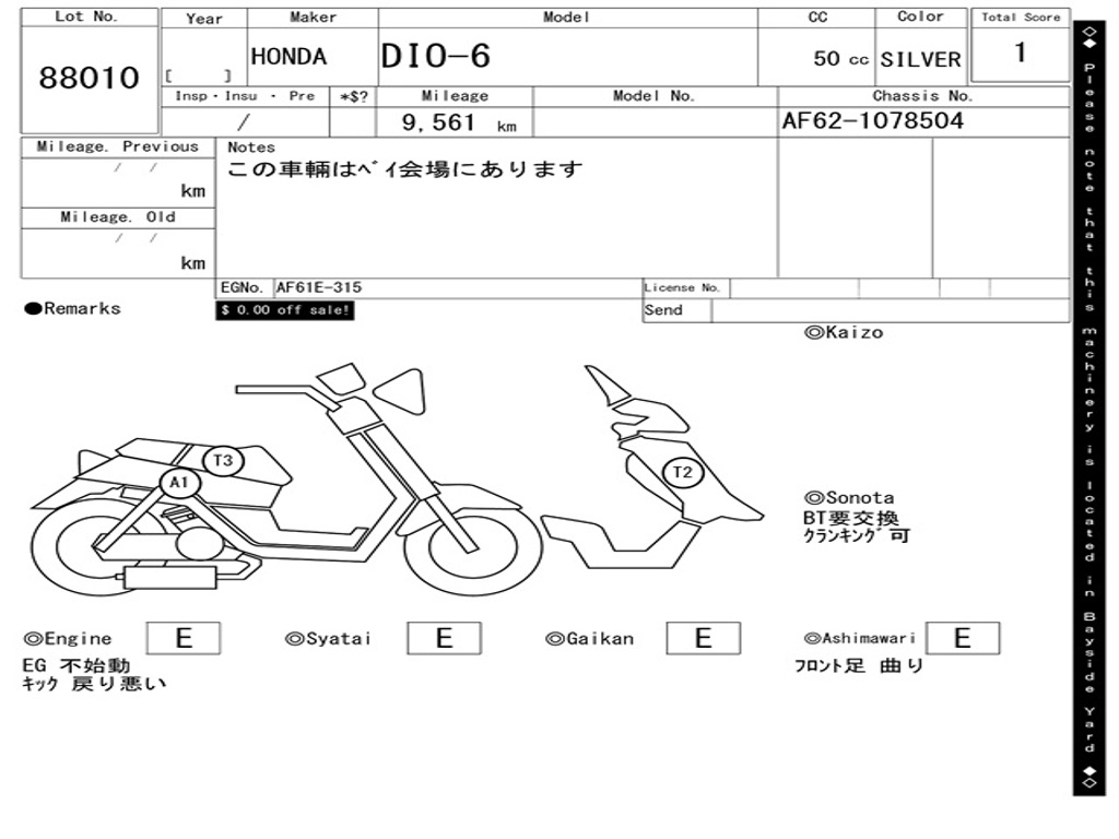 | Номер рамы / VIN | AF62-1078504 |