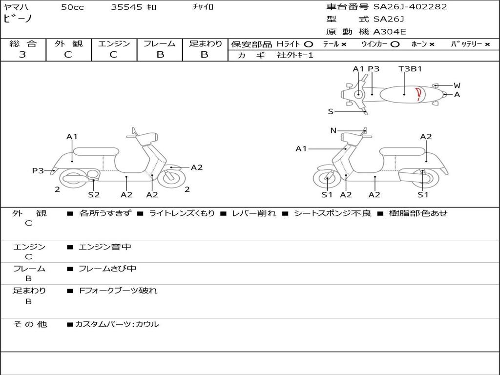 | Номер рамы / VIN | SA26J-402282 |