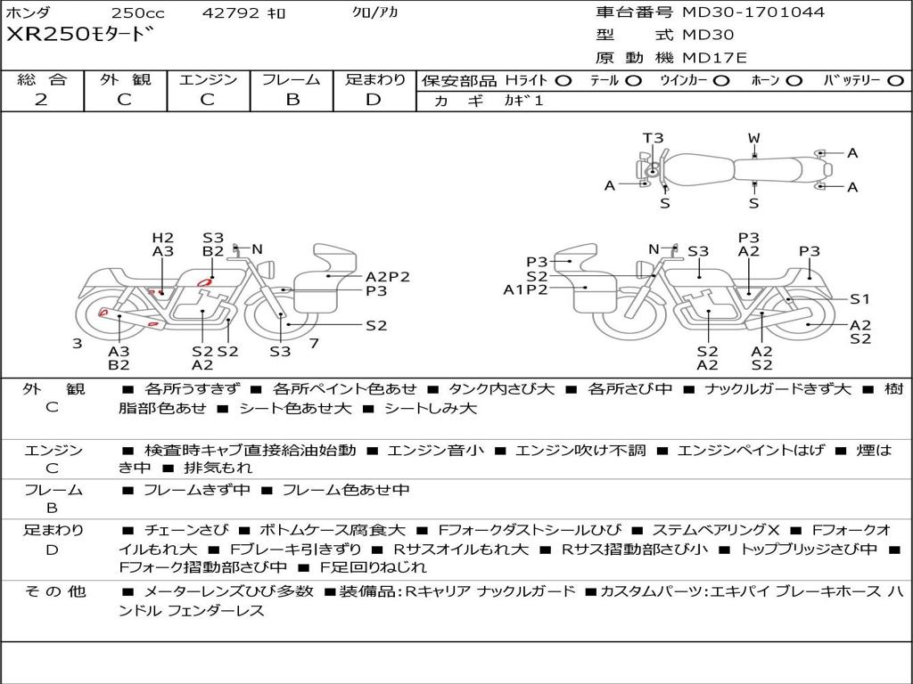 | Номер рамы / VIN | MD30-1701044 |