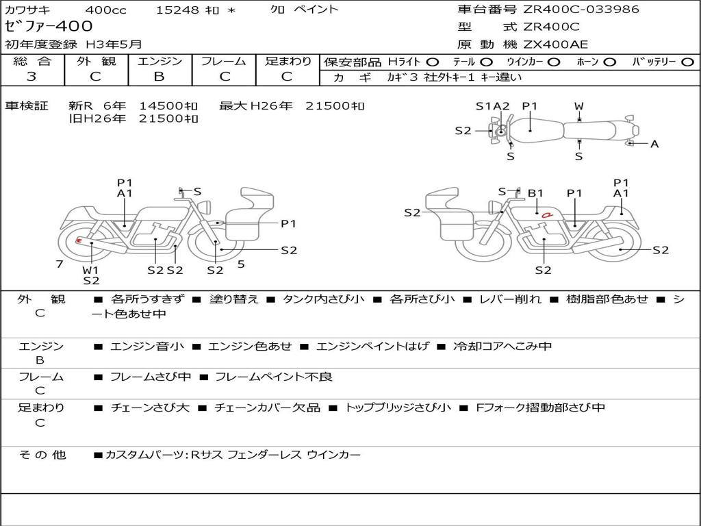 | Номер рамы / VIN | ZR400C-033986 |