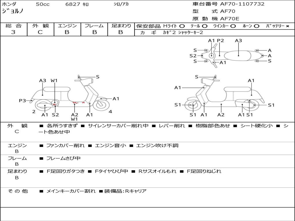 | Номер рамы / VIN | AF70-1107732 |