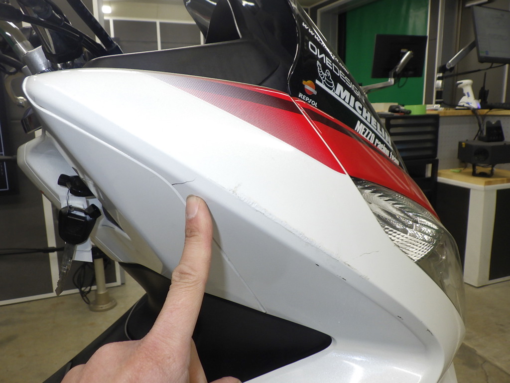 | центр. | царапины <много>, частичная подкраска, трещины |