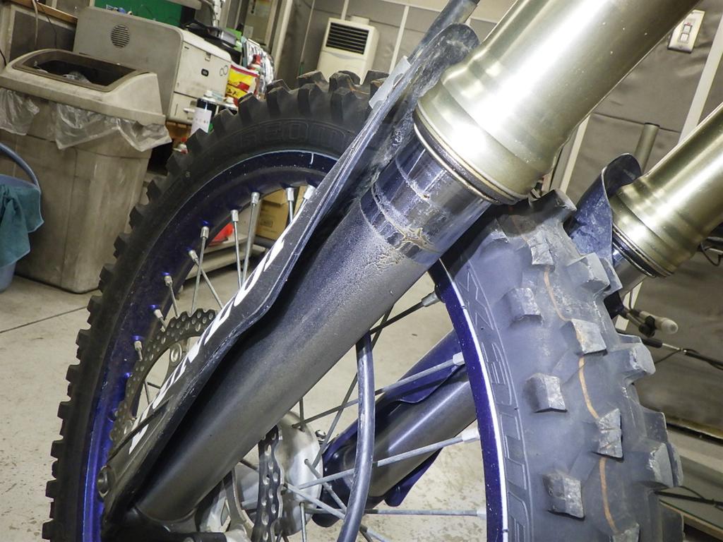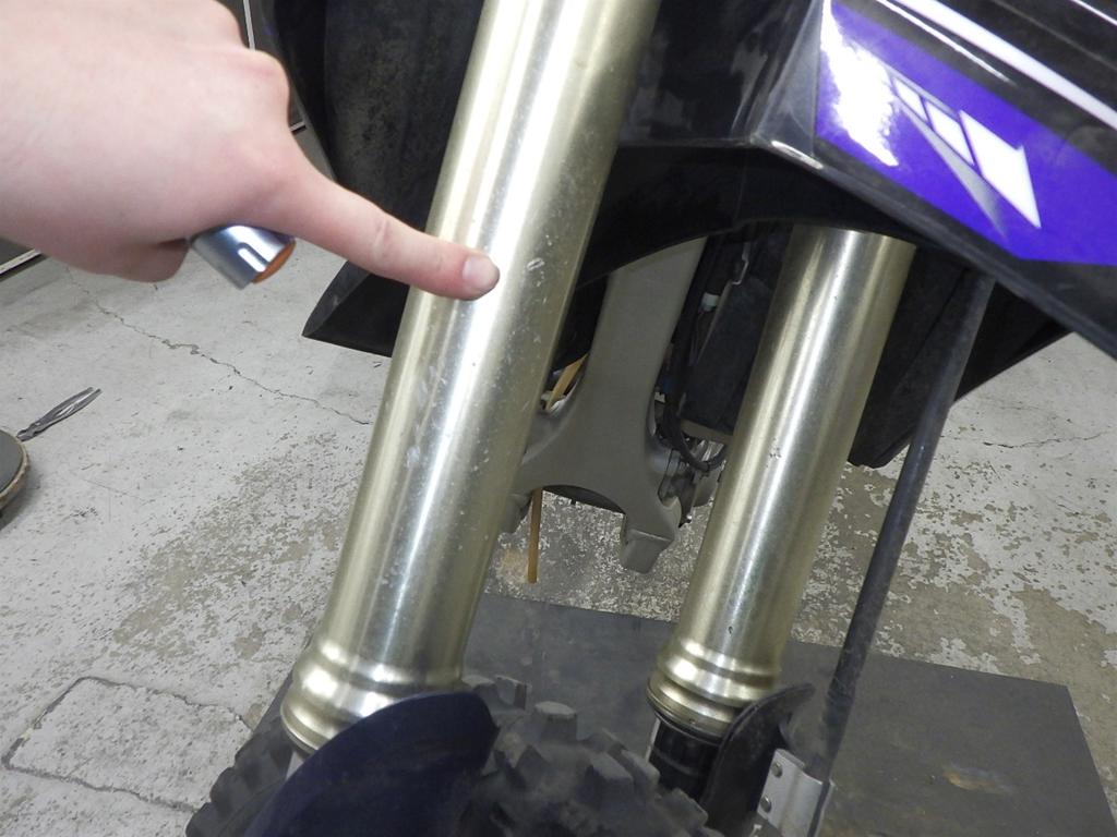 | внешняя часть вилки | царапины <много>, потек масла <много> |