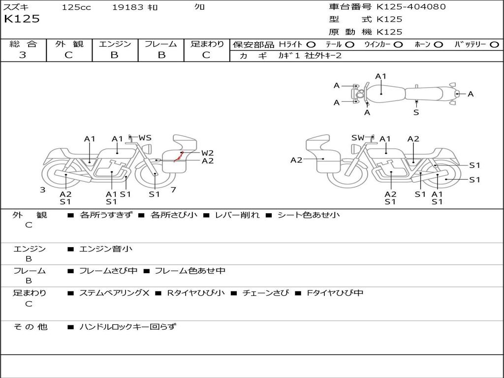 | Номер рамы / VIN | K125-404080 |