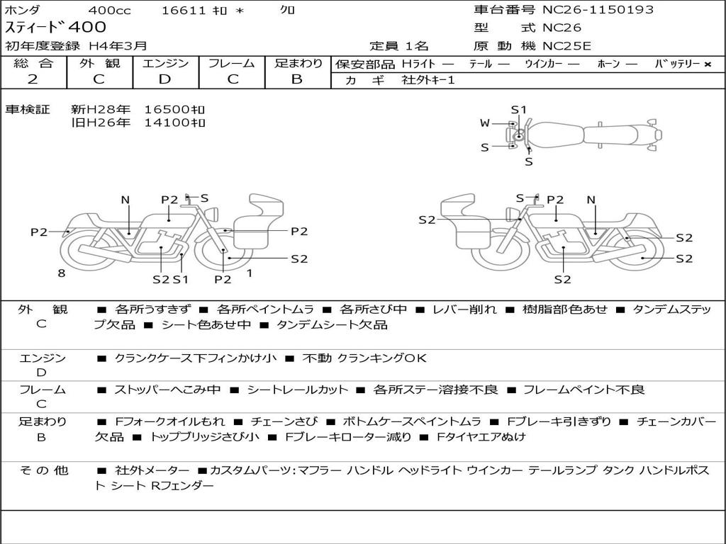 | Номер рамы / VIN | NC26-1150193 |