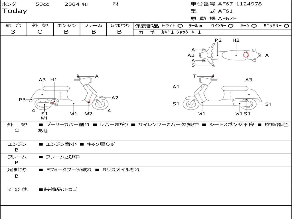 | Номер рамы / VIN | AF67-1124978 |