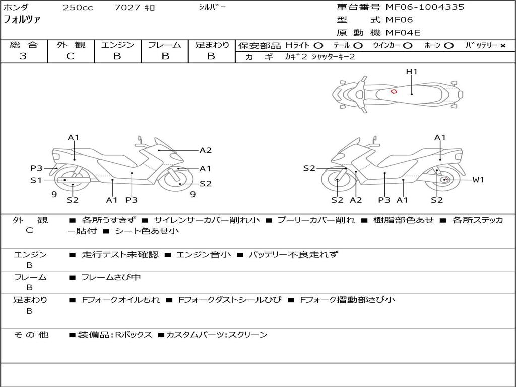 | Номер рамы / VIN | MF06-1004335 |