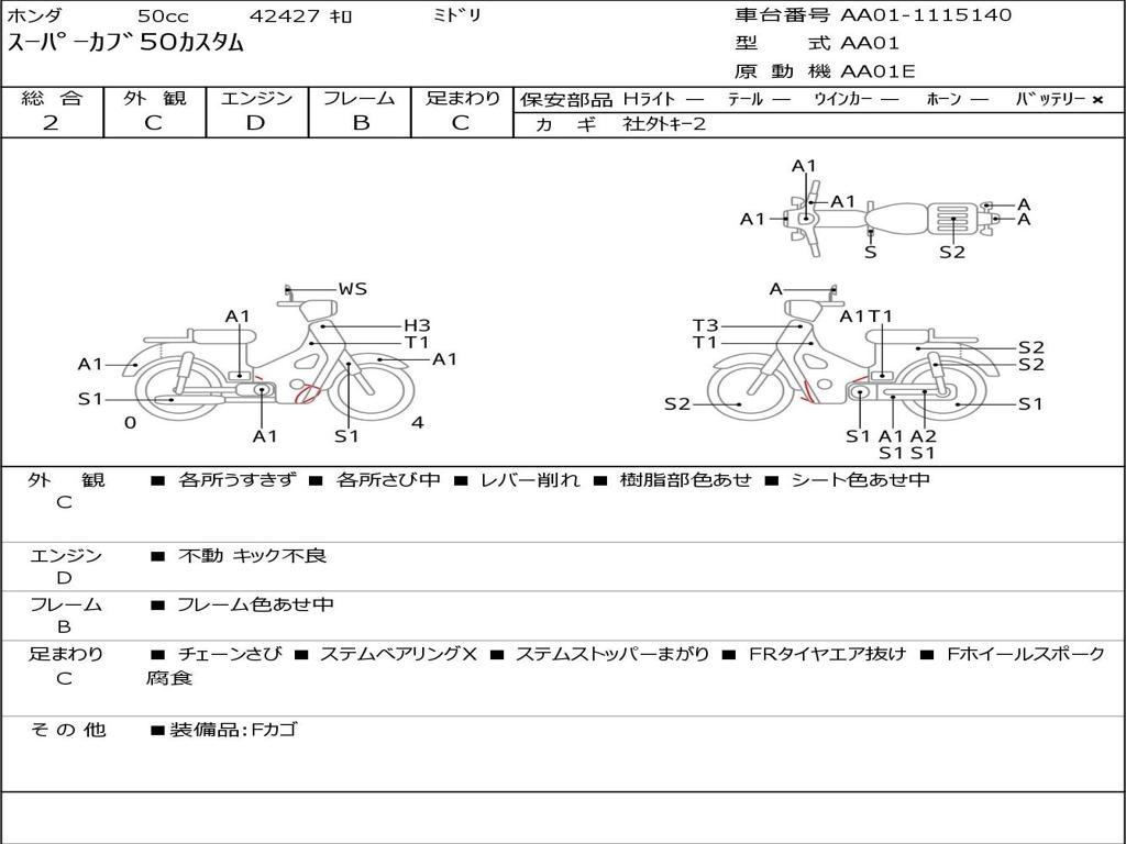 | Номер рамы / VIN | AA01-1115140 |